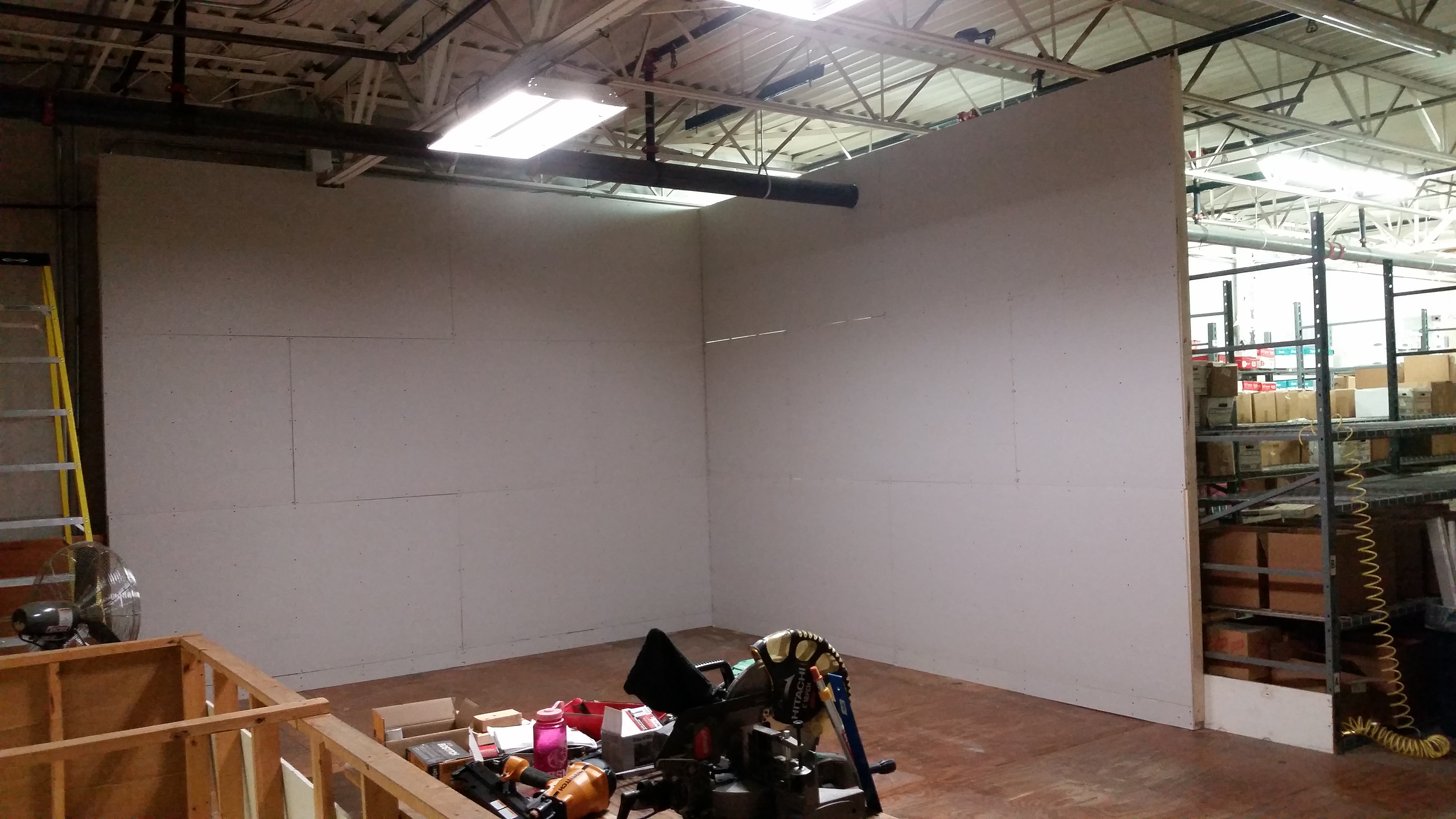 After a few years of my creative director asking for $120,000 to build a dedicated video space on to our photo studio I finally asked for $1500 and went to the darkest, dirtiest, most forgotten spot in our warehouse. Below is a picture diary of what can be done in 3 weeks working half days at your desk and half days doing construction... by my self.